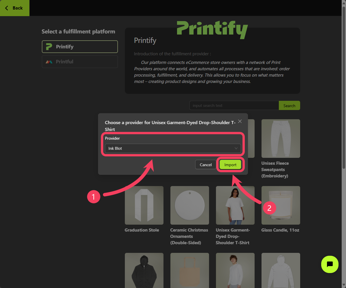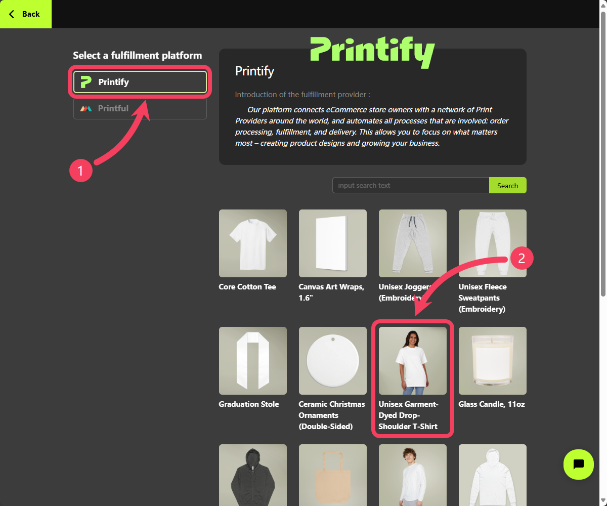 - Choose a fulfillment platform you’d like to use, such as
