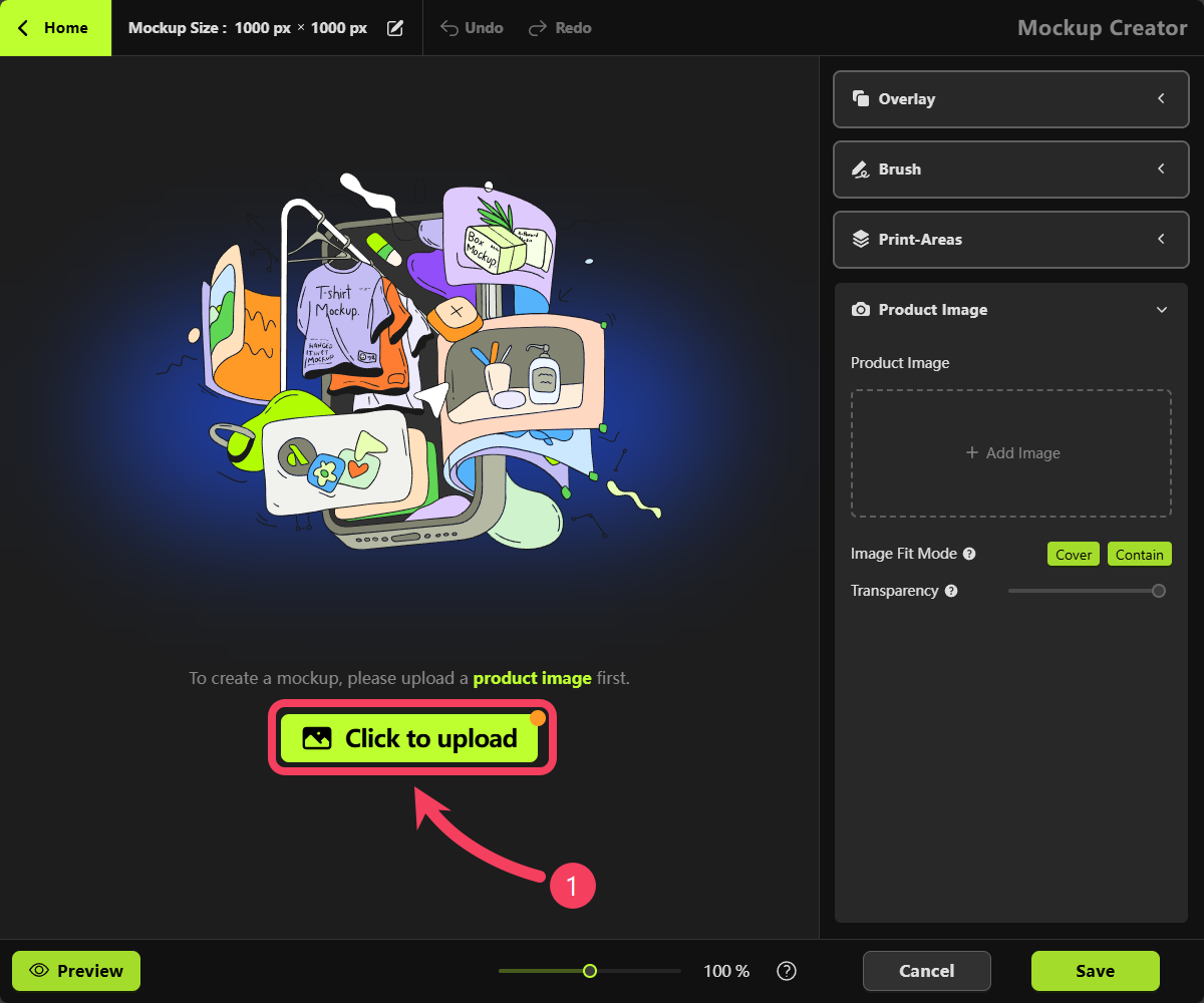 - Click Back to return to the Mockup Creator.