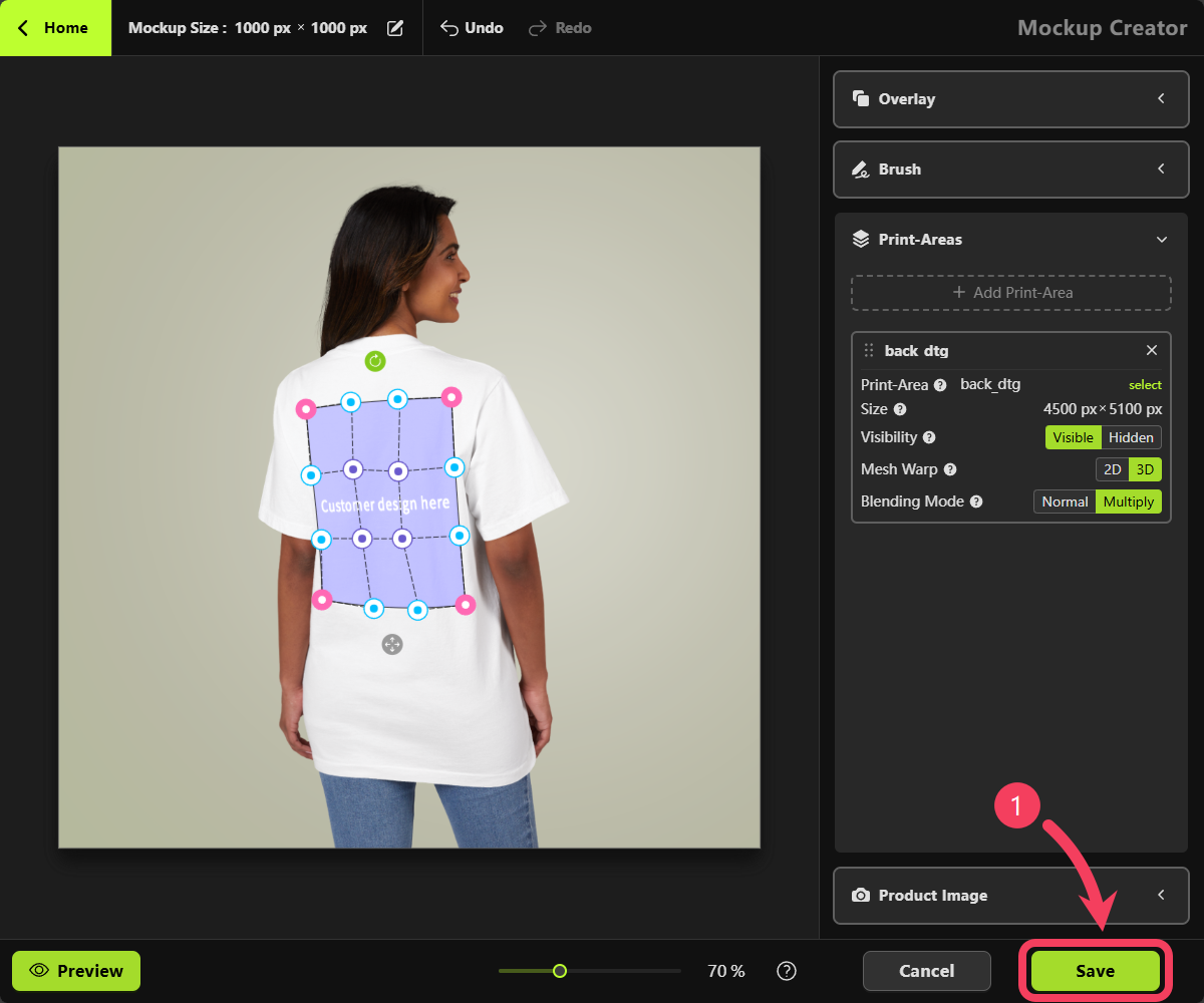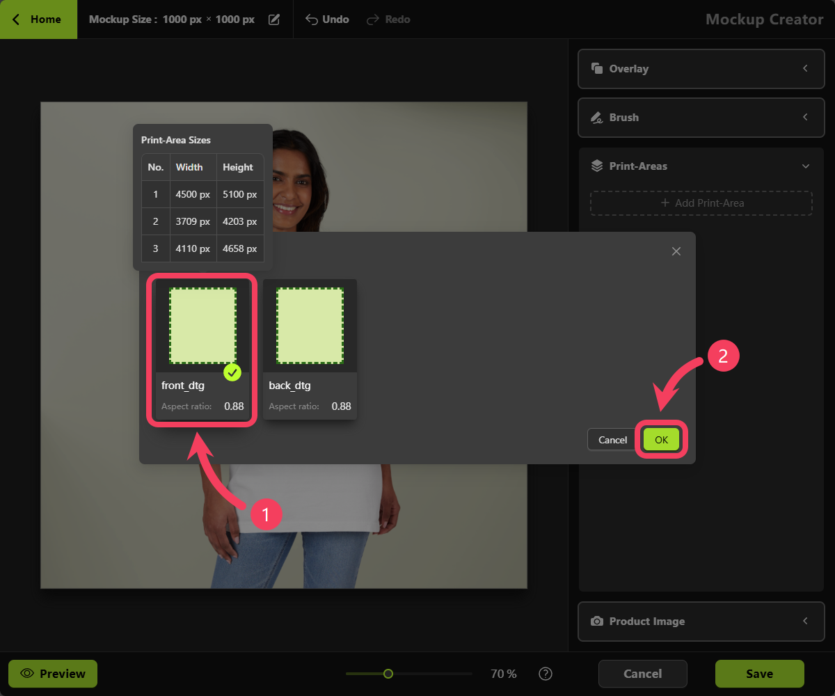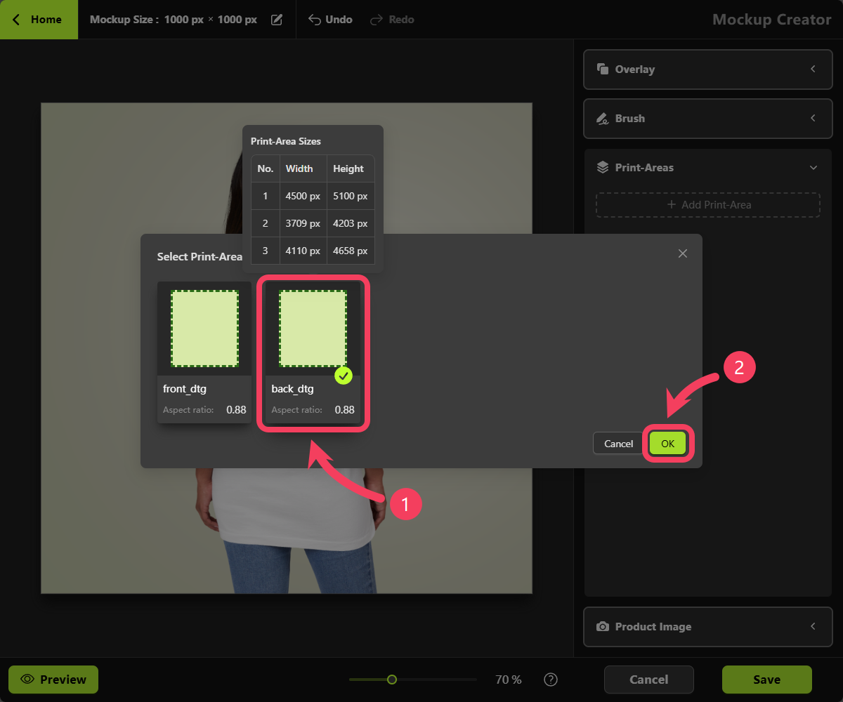 - Click OK to add this Print Area to your mockup.