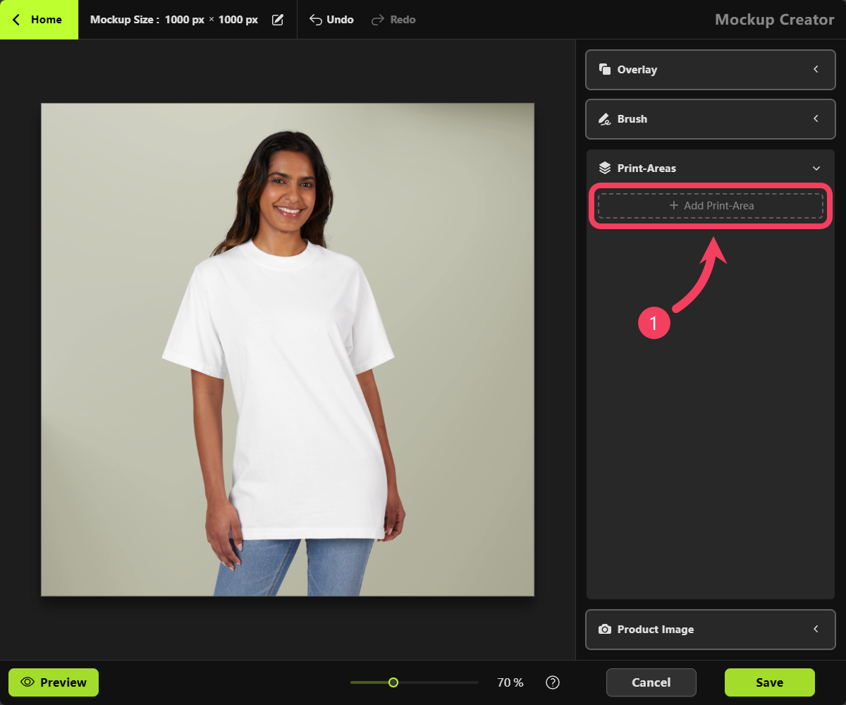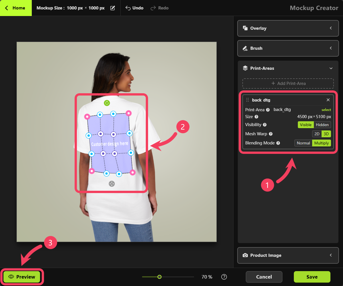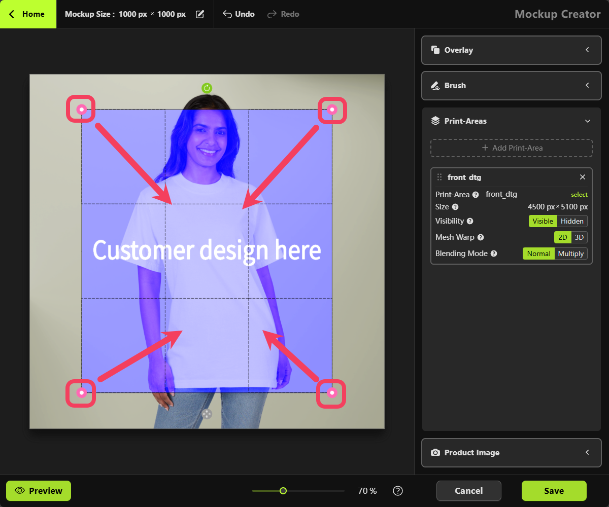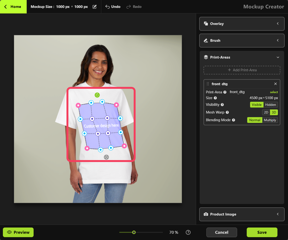 - Click OK to add this Print Area to your mockup.