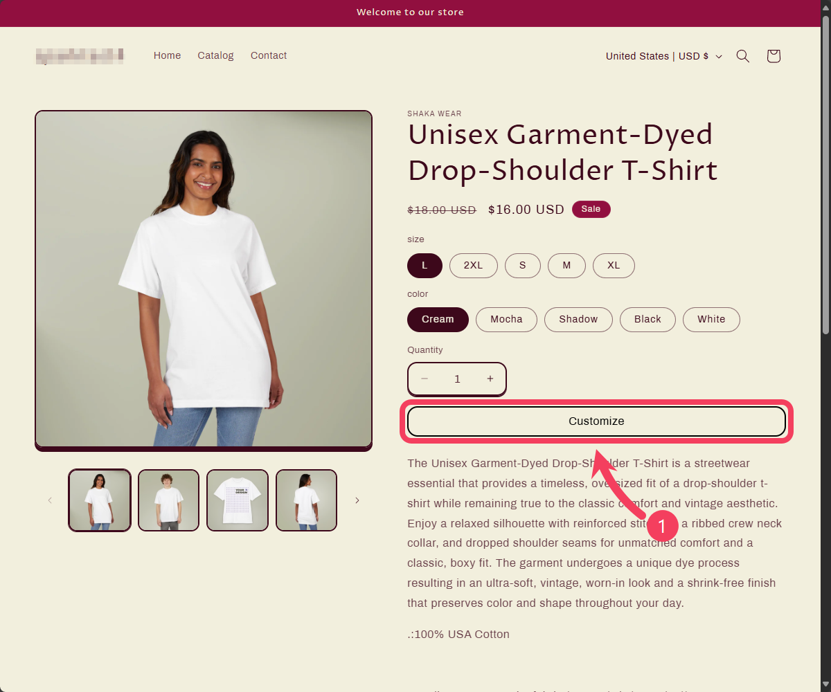 Click the Customize button on the product page of your Shopify store.