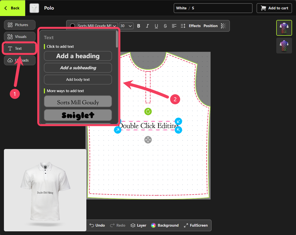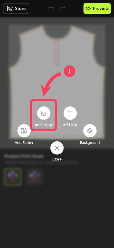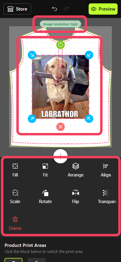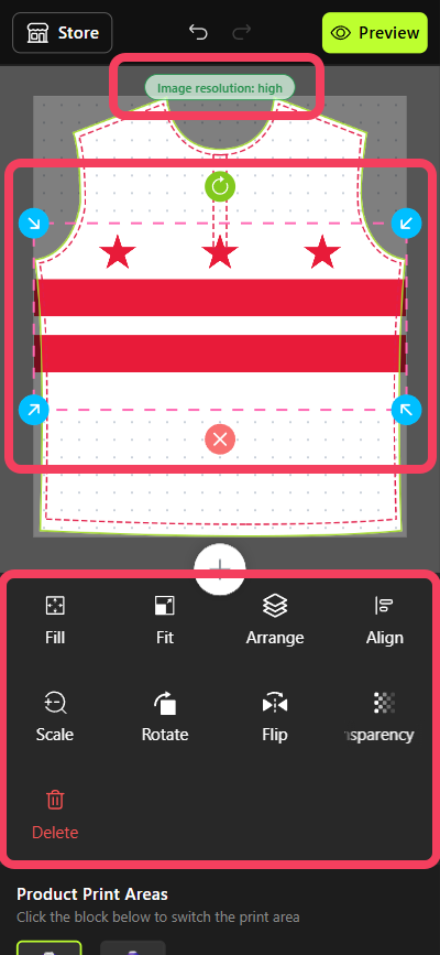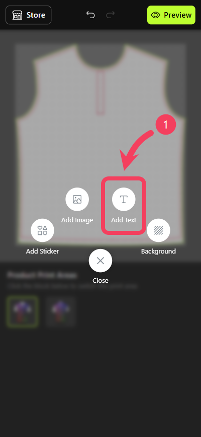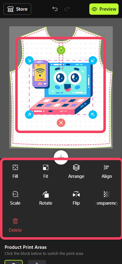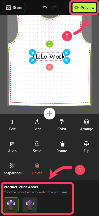 Print-Area, you can switch to other Print-Area of the product to continue designing. - Once your design is complete, tap the Preview button located on the right side of the top bar in Personalizer to preview the final look of your design.