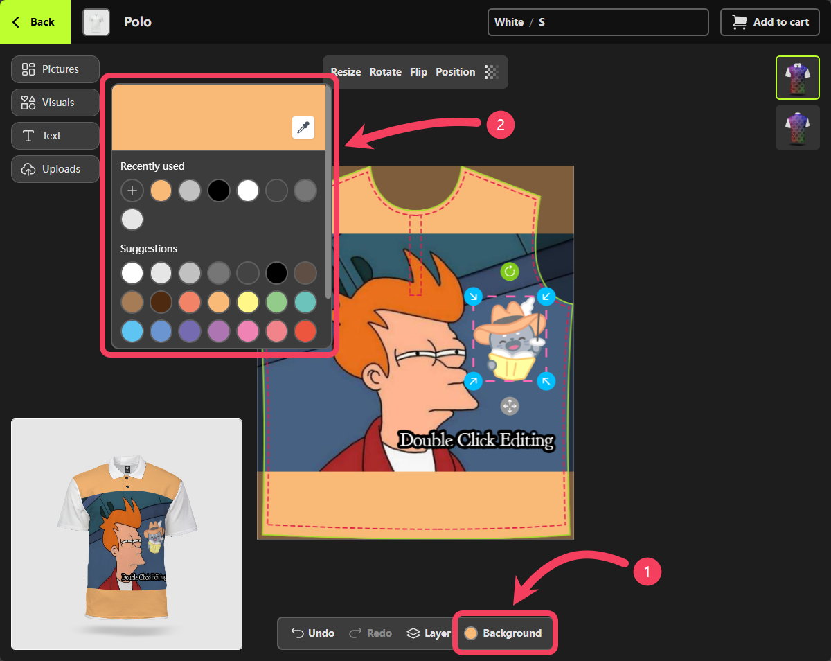 - Select Background from the canvas control bar at the bottom of the Personalizer.