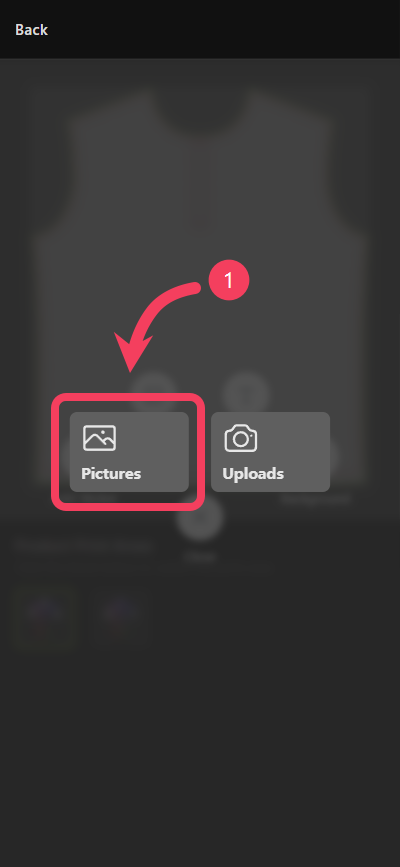- In the Pictures panel that appears to the right of the button, choose your preferred image and add it to the canvas to begin designing.