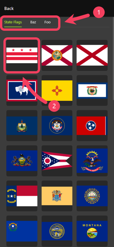 - In the Visuals panel that appears to the right of the button, browse and select your preferred visual to add it to the canvas.