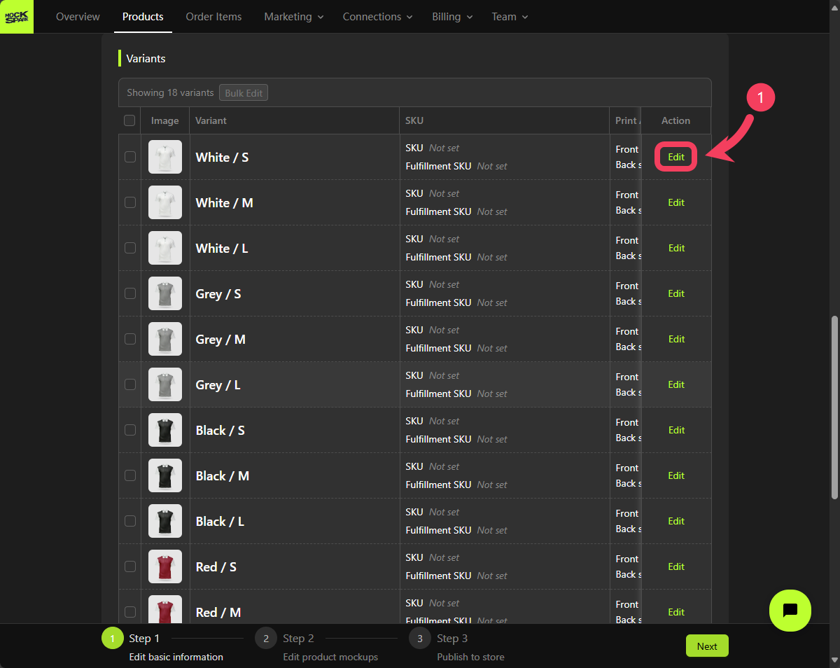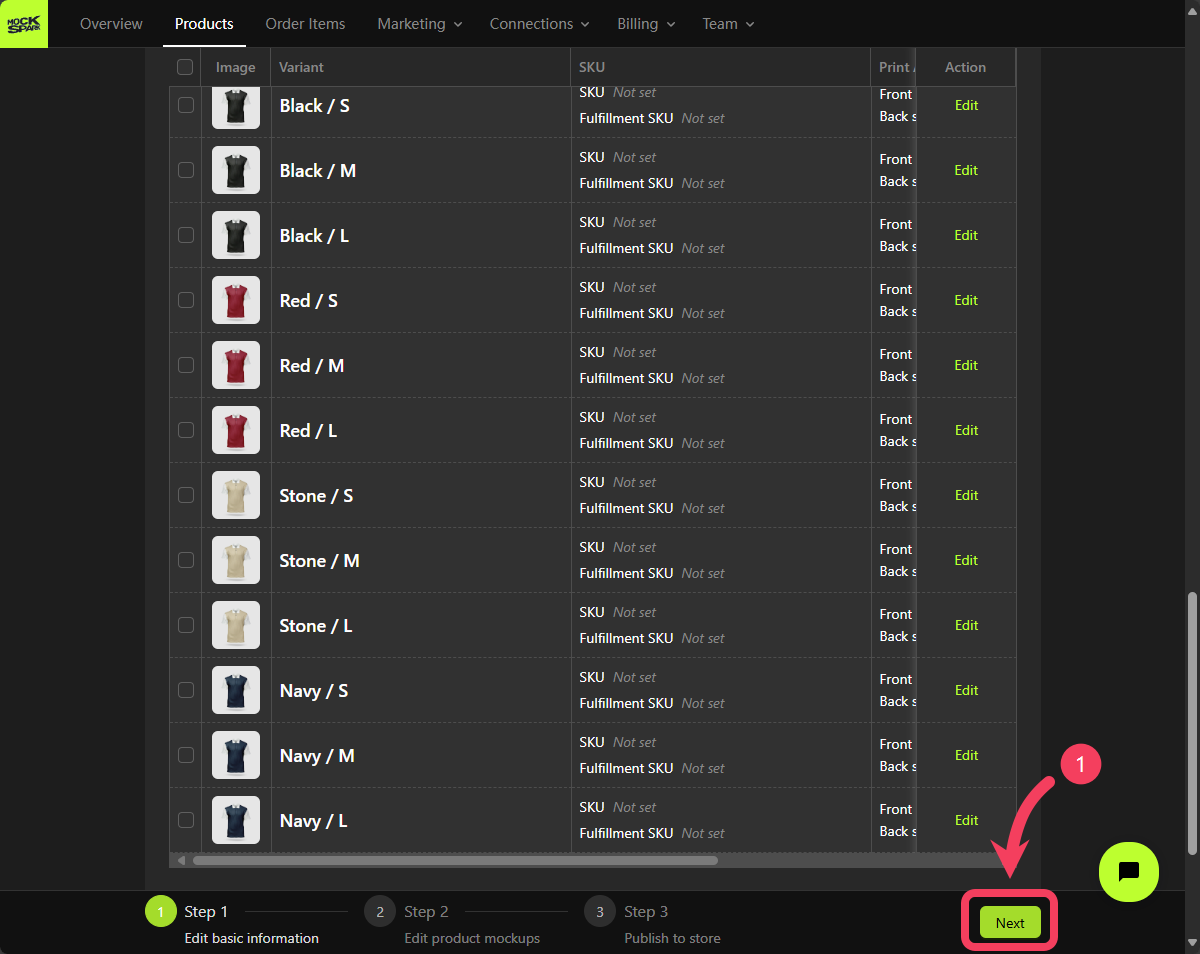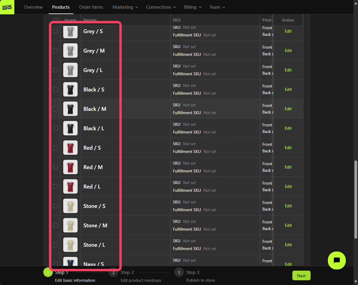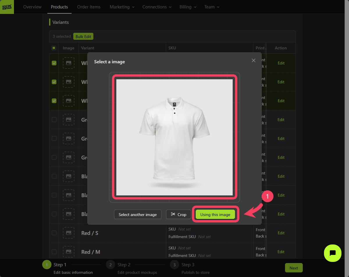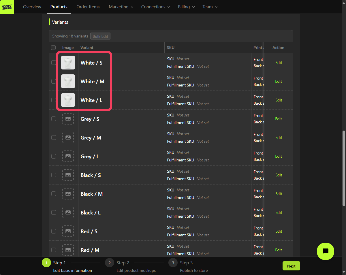 On the Step 2 screen, you’ll see a Mockup Group that includes all product variants. This is a system-generated group nameddefault.