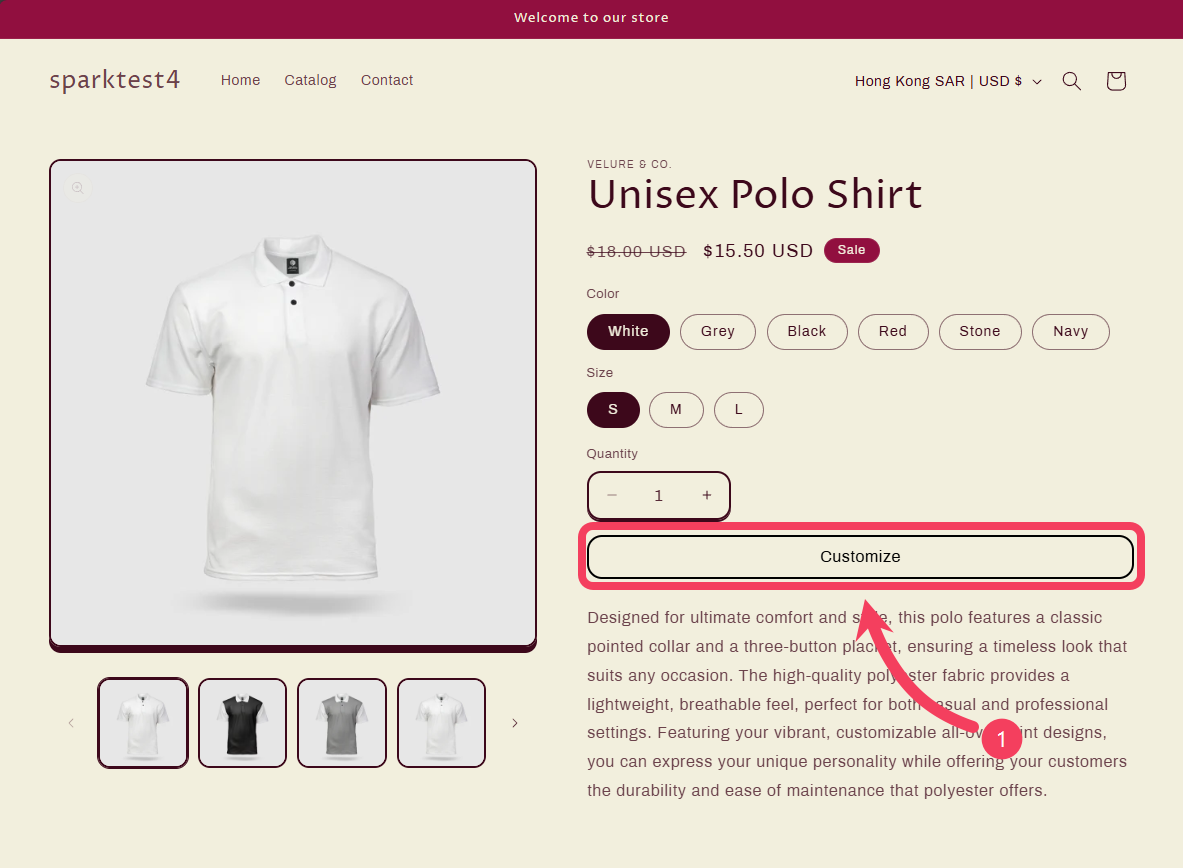 Click the Customize button on the product page of your Shopify store.