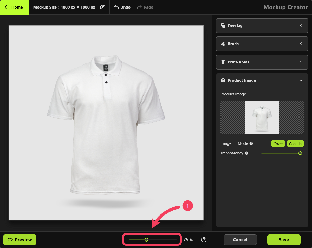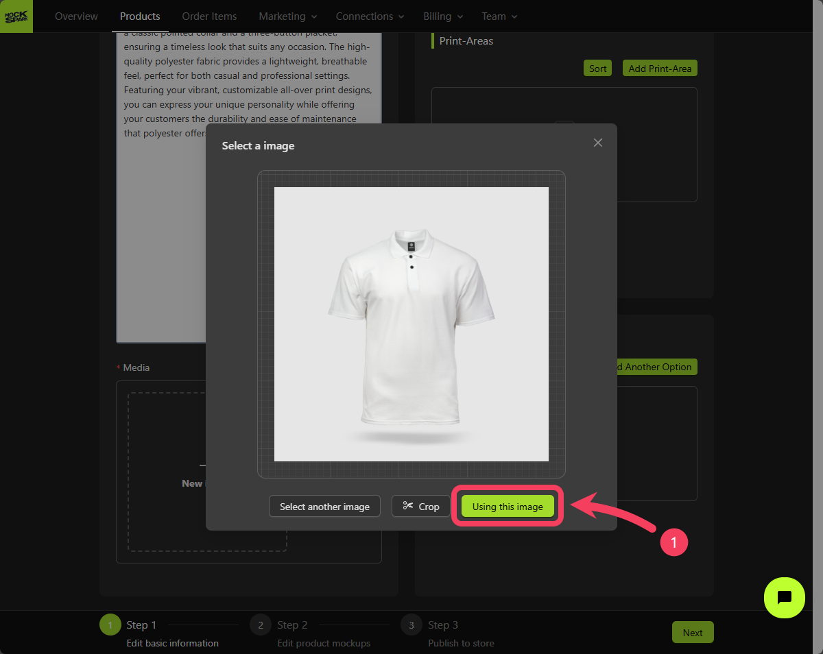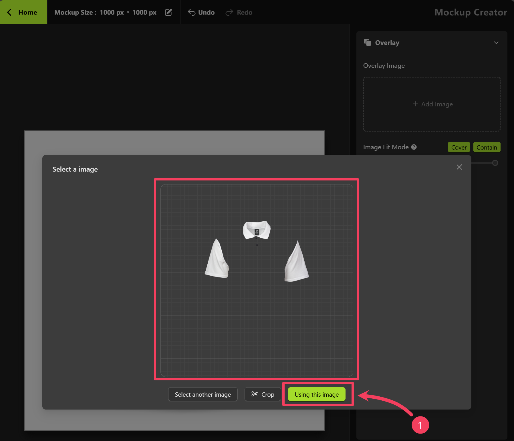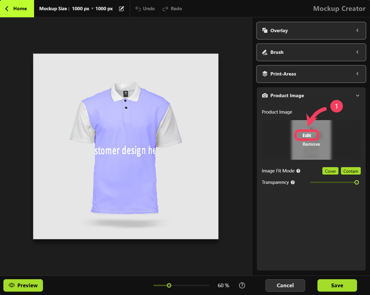 Mockup Creator, select Product Image and click Edit.
