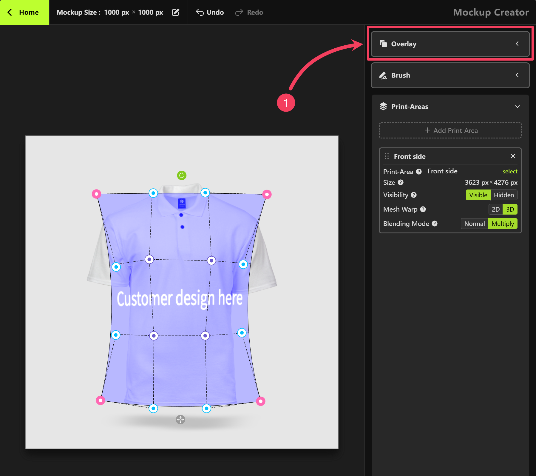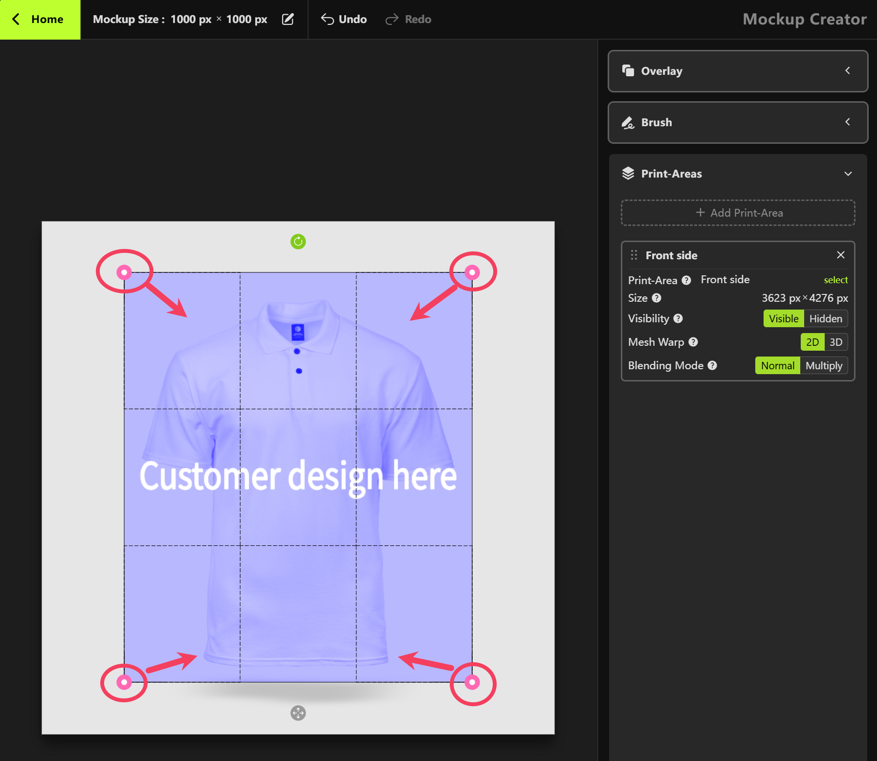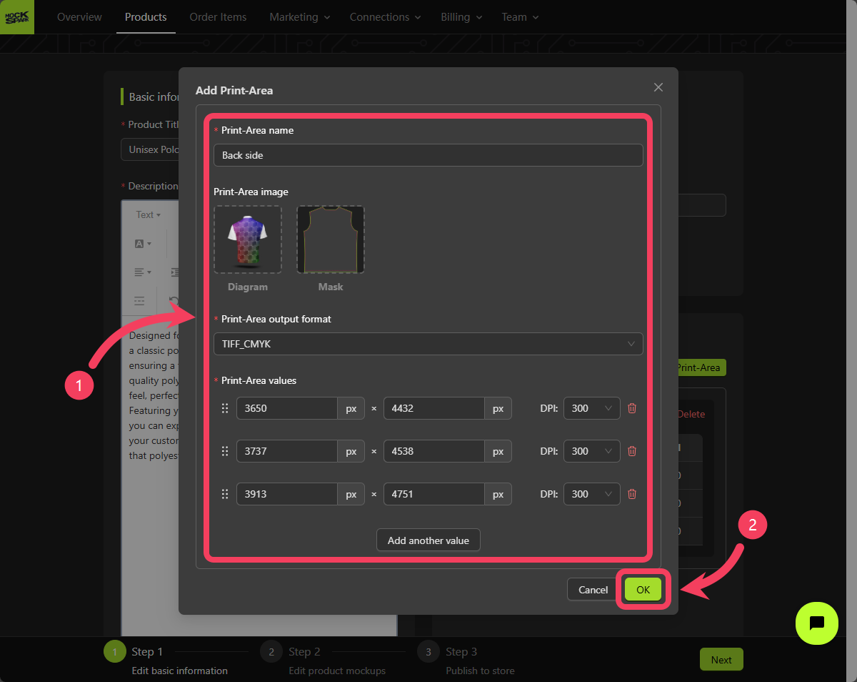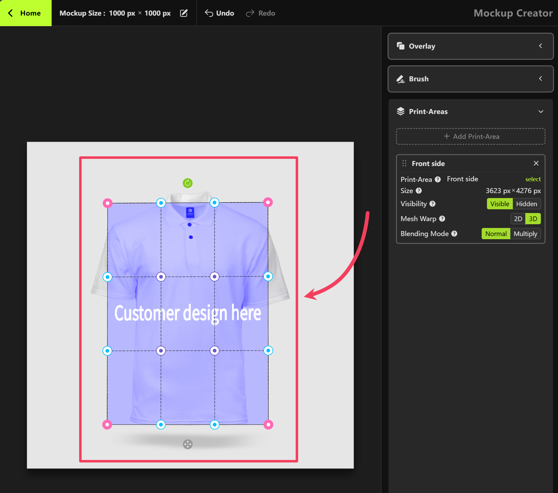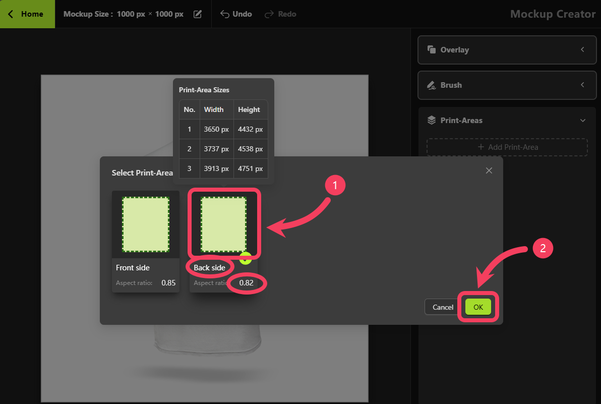 - Click OK to add this Print Area to your mockup