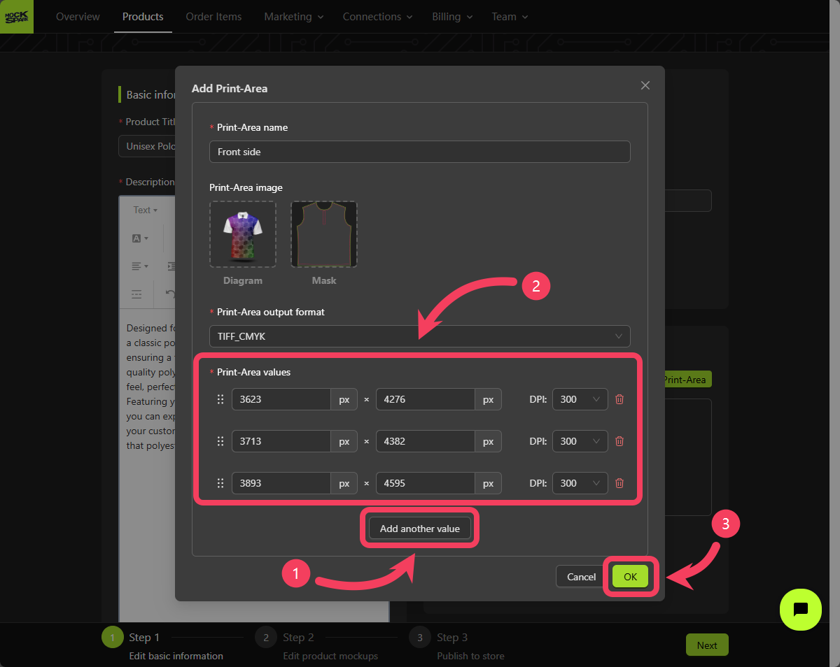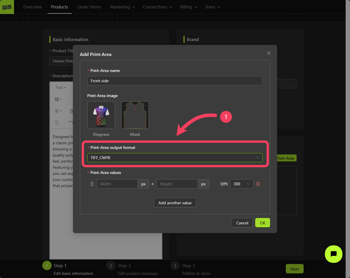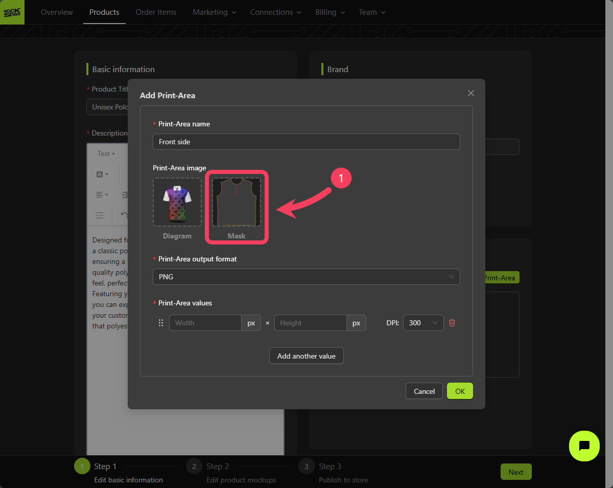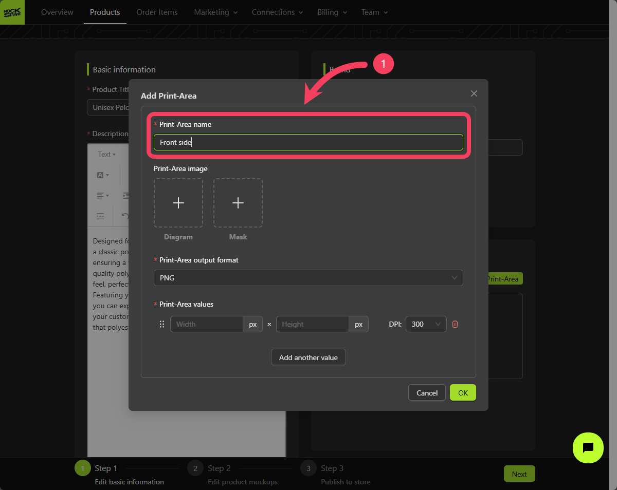 - Click OK to add this Print Area to your mockup