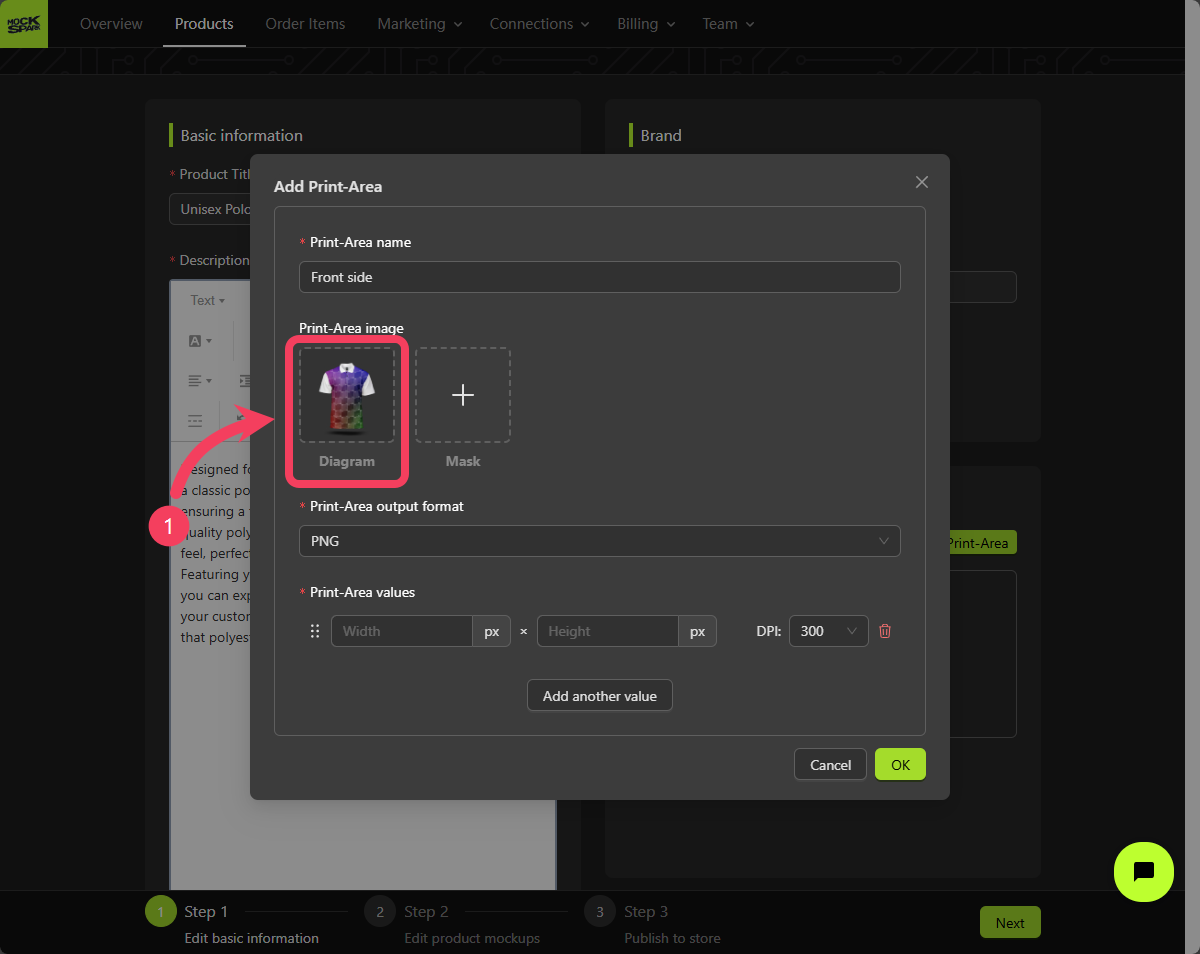 Uploading a Diagram is optional. If you don’t provide one, the system will automatically generate a default image based on the size of each Print-Area.