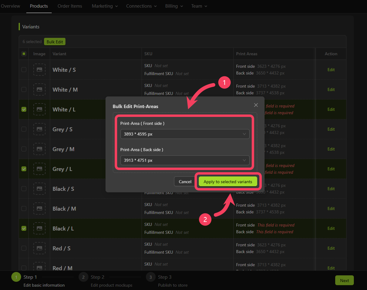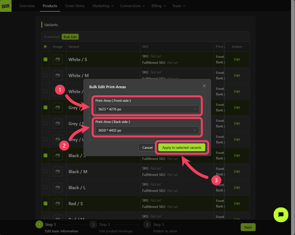3650 × 4432 px. - Click Apply to Selected Variants.