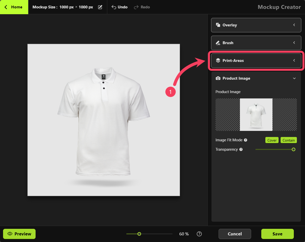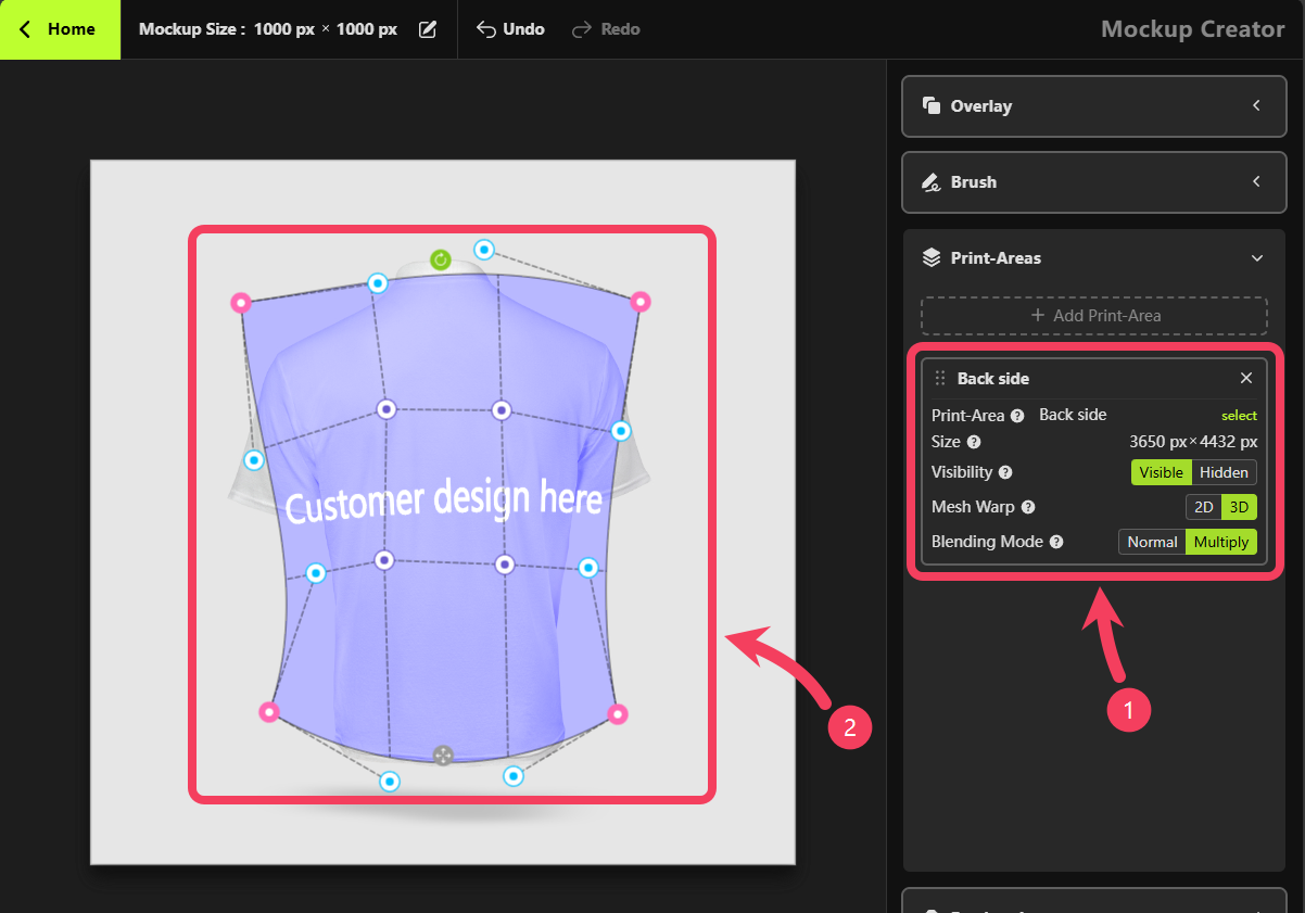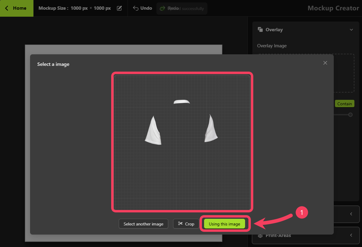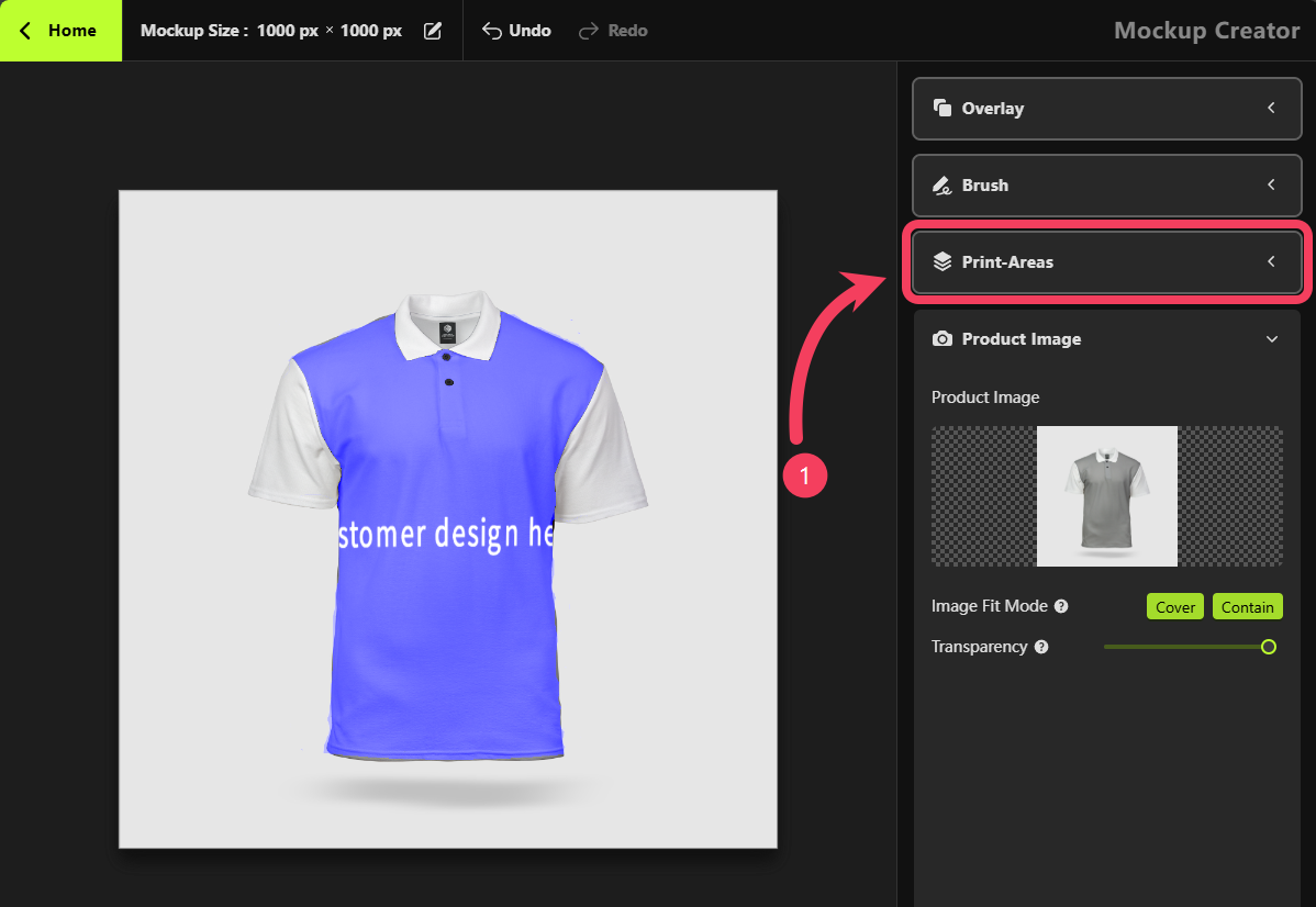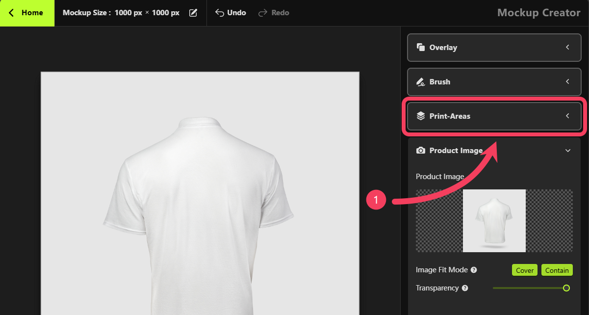 Mockup Creator, select Print Areas.