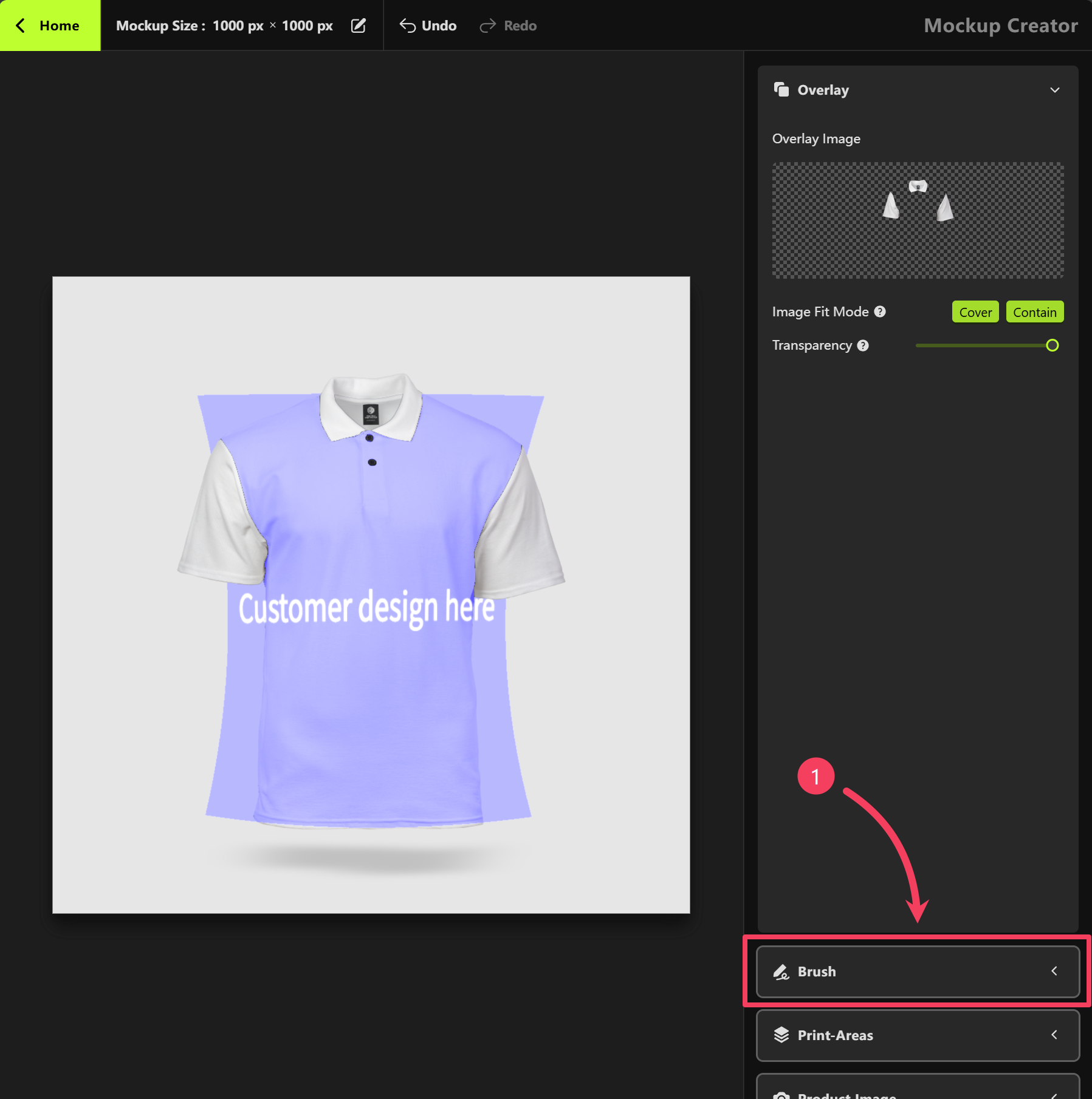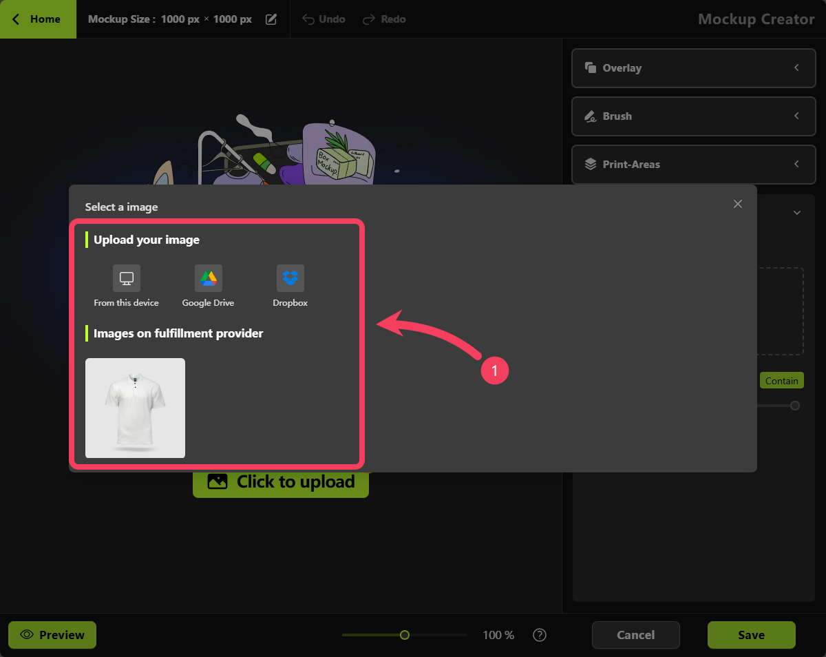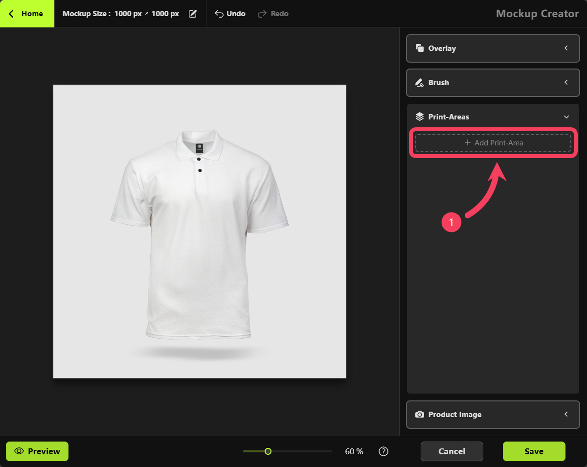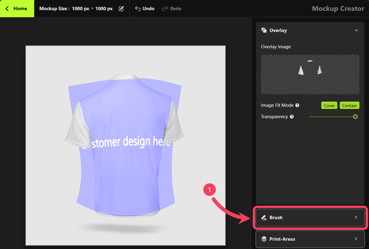 Mockup Creator, select Print Areas.