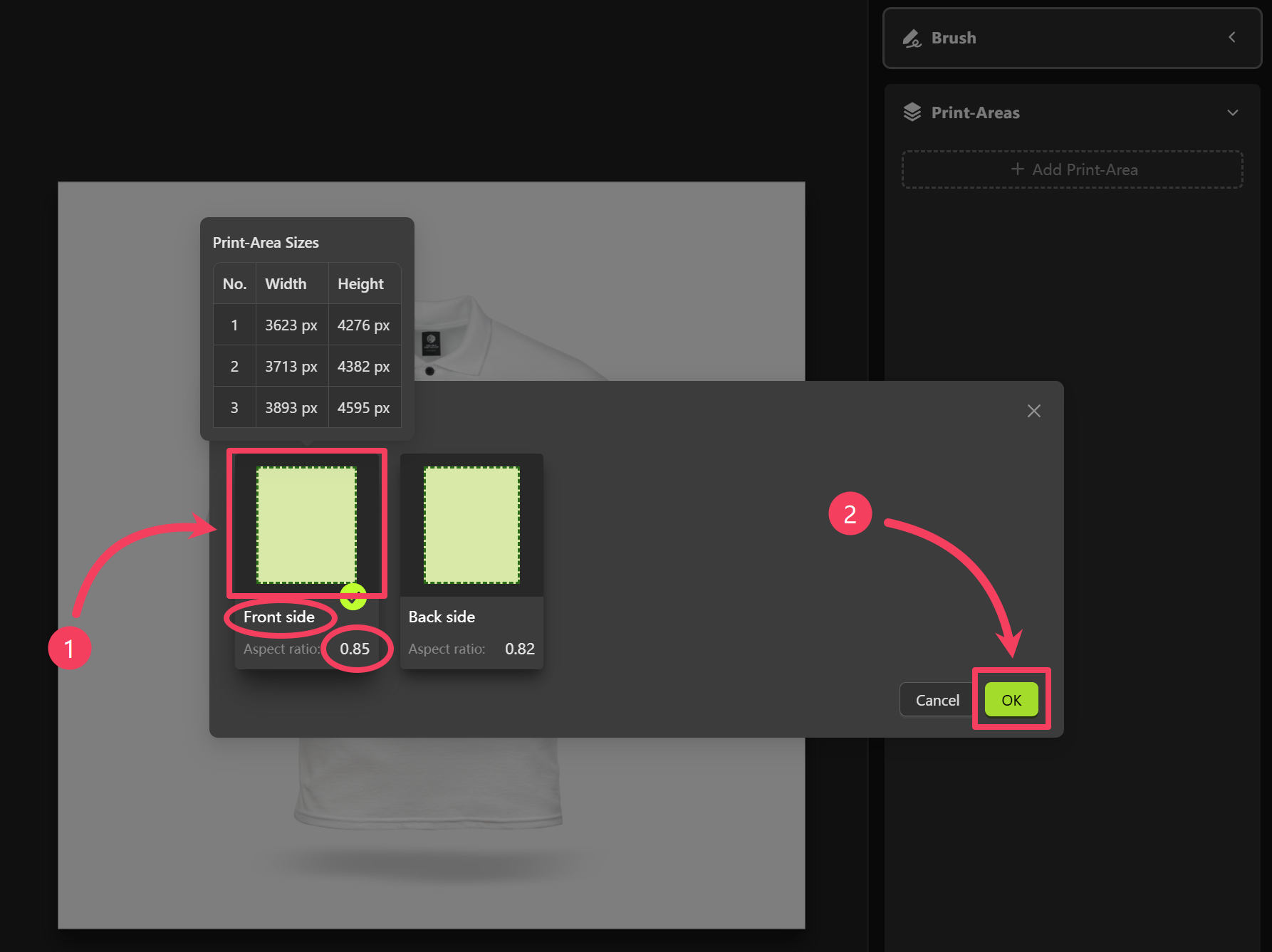 Front side. Next, we’ll set up another Print-Area for the back of the product.