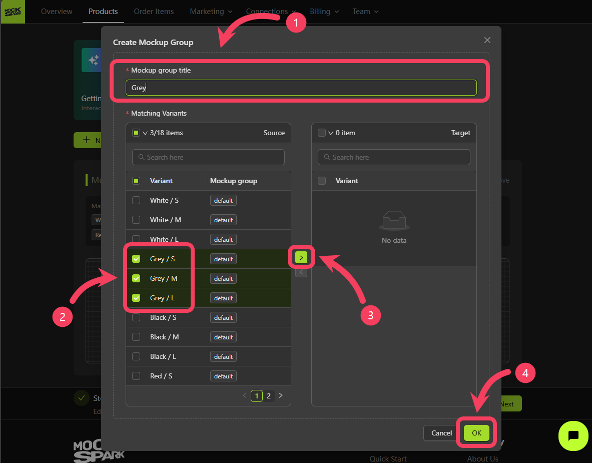 Source Boxto theTarget Box. This assigns them to the newGreyMockup Group. - Click OK to save your changes.