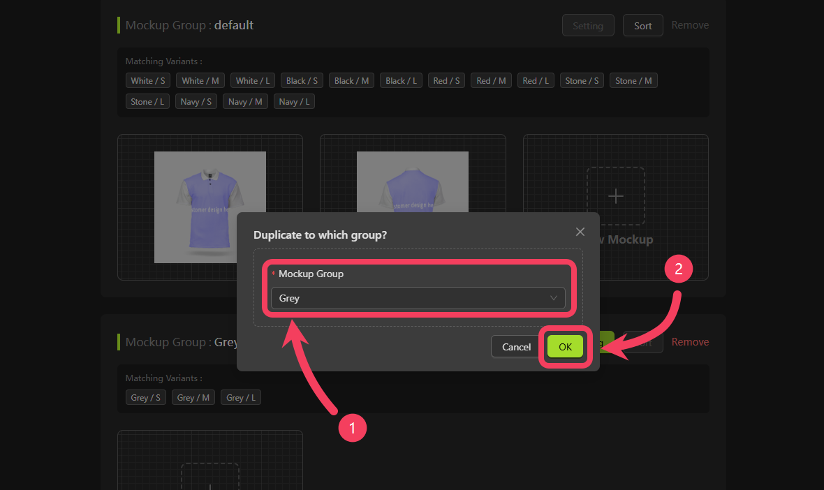 Greyas the target Mockup Group. - Click OK to complete the duplication.
