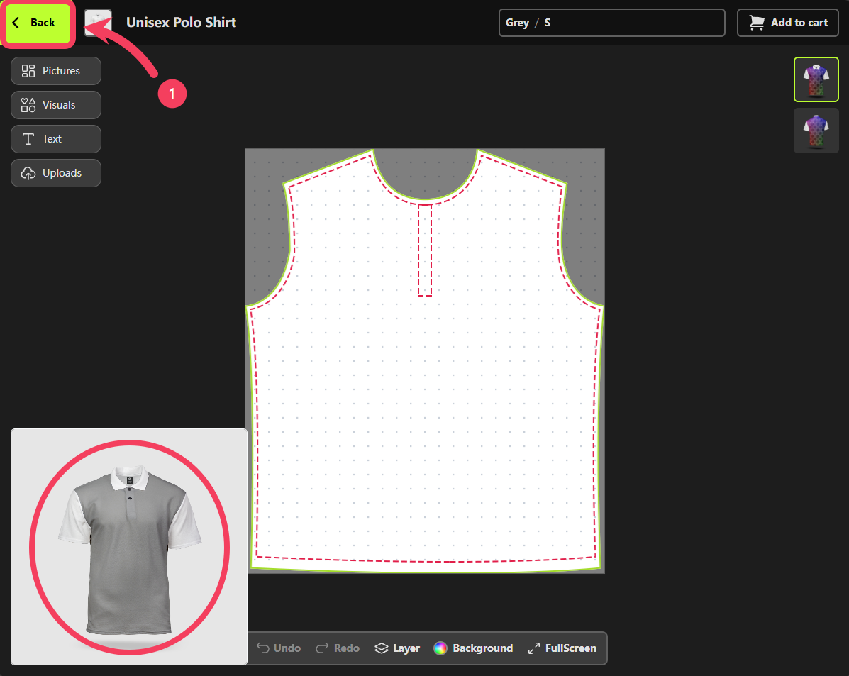 Product Personalizer has been updated to show the Grey product, click Back to return to the Mockup Creator.