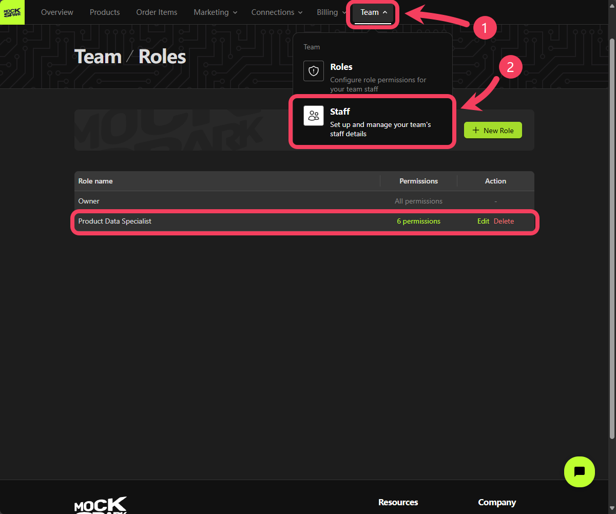 Once you’ve confirmed that the new role has been successfully created, you can move on to adding a team member.- Select Team section from the top navigation bar.
