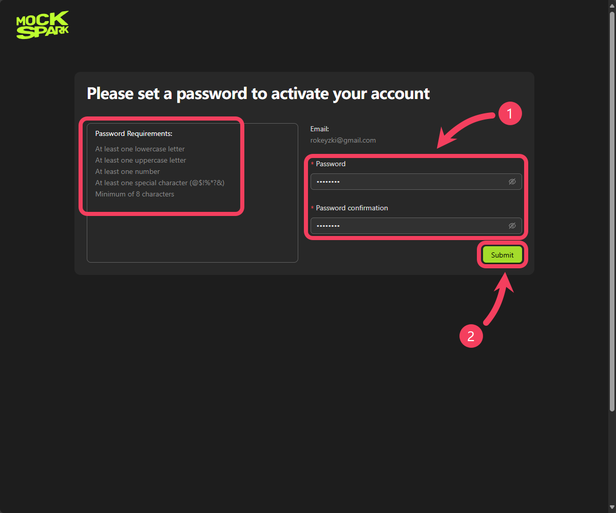email, they will be redirected to the MockSpark account activation page.