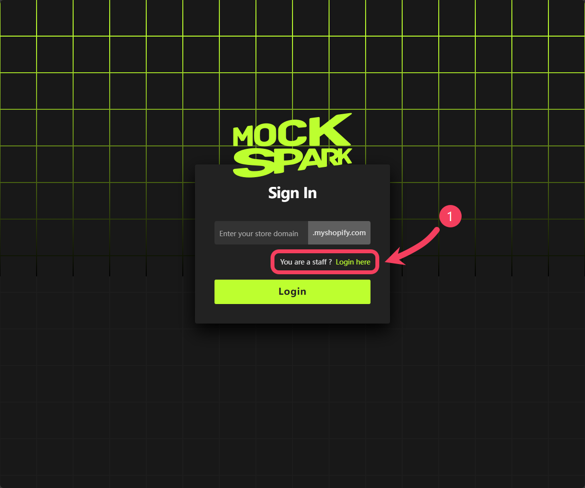 "You are a staff? Login here" and click it to switch to the Staff Login view.