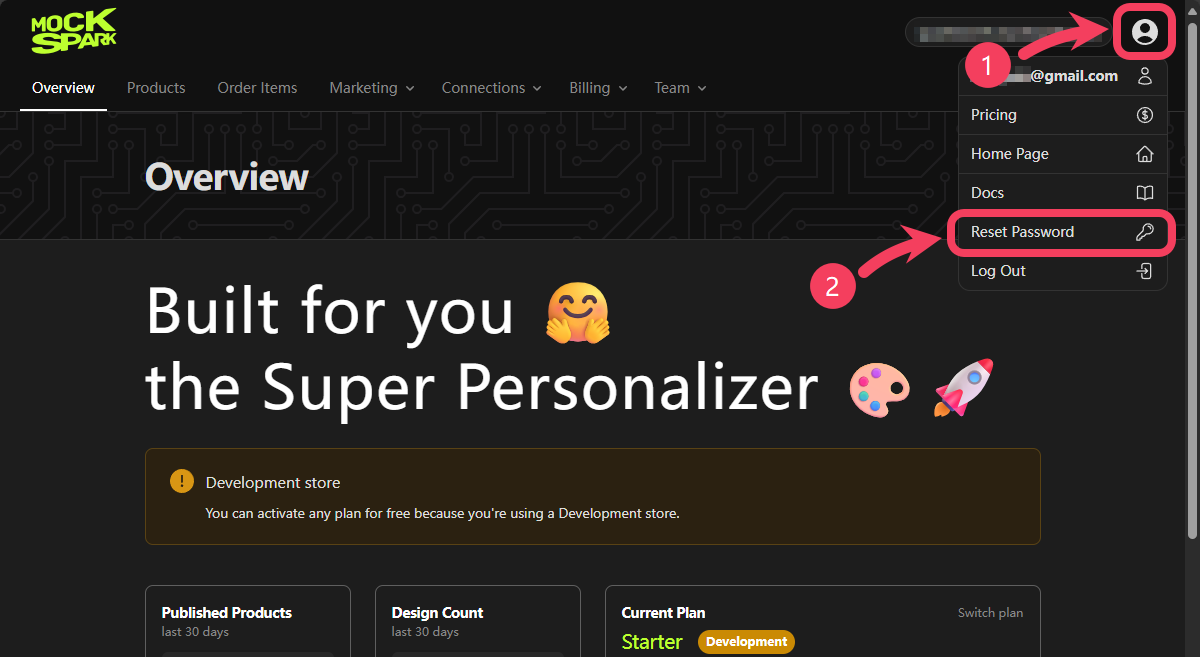 If a team member wants to change their password, they can follow these steps:- After logging in to MockSpark, click the profile icon in the top-right corner of the page.