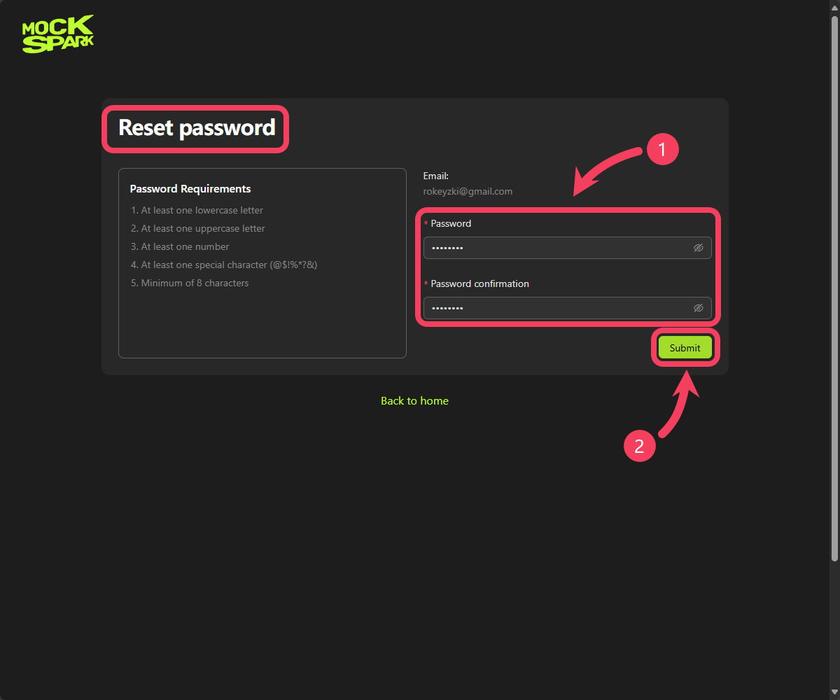 email addressandpassword. - Click Login to access MockSpark.